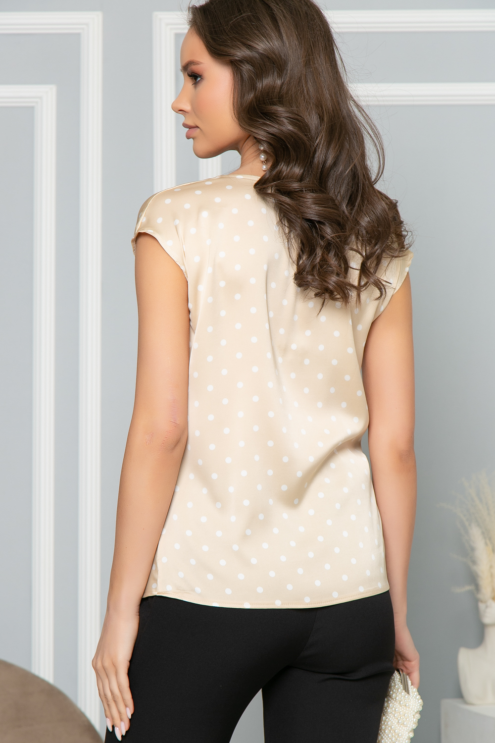 Женственная блуза из струящейся ткани добавит лёгкости вашим офисным образам. Блуза свободного кроя, выполнена без рукава для комфортного использования под пиджак или жакет. Украшение бузы - вырез горловины, оформленный ниспадающими складками ткани.