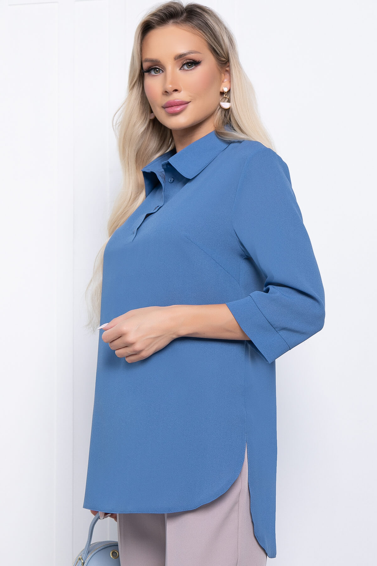 Лёгкая блуза свободного кроя в новом оттенке! Блуза с удлиненной спинкой, края скруглены, по бокам разрезы. Классический отложной воротник, по переду застёгивается на 4 пуговицы. Рукав три четверти, на манжете. Такая блуза подойдёт для создания офисного образа, а также её можно использовать в повседневных ансамблях.