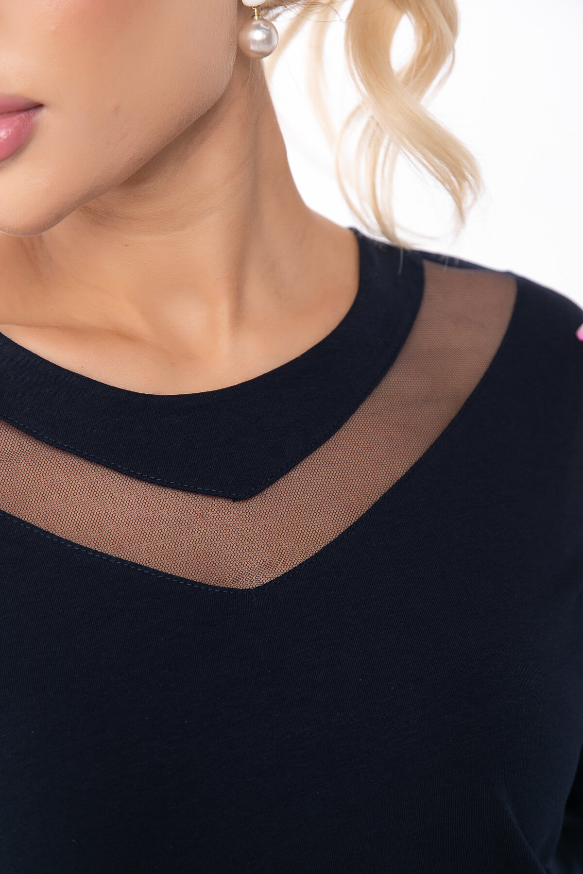 Женственная блуза с акцентным декольте добавит лёгкости Вашим офисным образам. Отлично смотрится как с брюками, создавая деловой стиль, так и с джинсами. Идеально подходит для повседневной жизни. Рукав три четверти, втачной с акцентными вставками.
