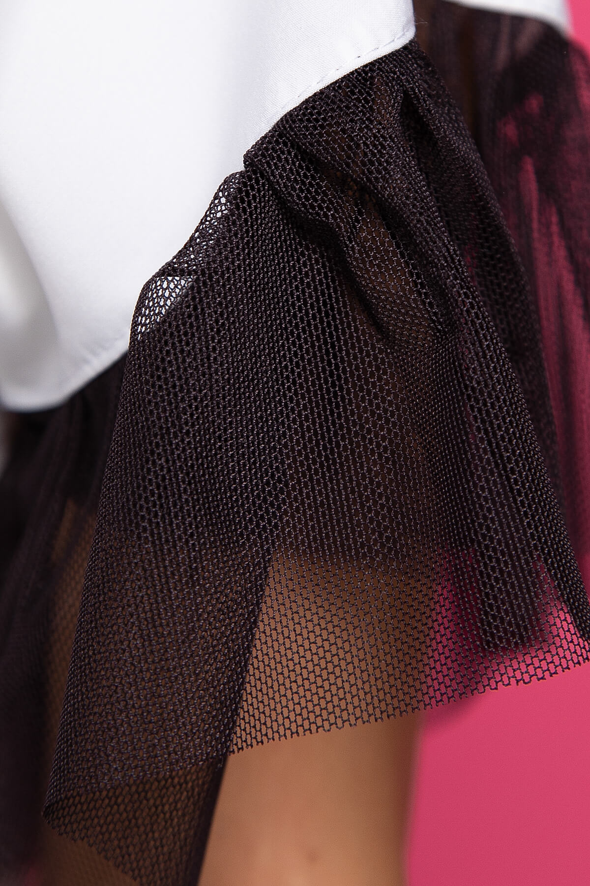 Базовая женская блуза свободного кроя из приятной к телу блузочной ткани. Такая блуза может стать основой не только делового гардероба, но и вечернего наряда. Оригинальный дизайн объединяет в себе классику кроя базовой блузы и трендовый декор в виде присборенной сетки на рукавах. Сетка выполнена в контрастном варианте подходящего подтона основному цвету изделия. Горловина-лодочка комфортного размера без застежки, а укороченный рукав-кимоно позволит чувствовать себя свободно и не будет стеснять вас в движении.