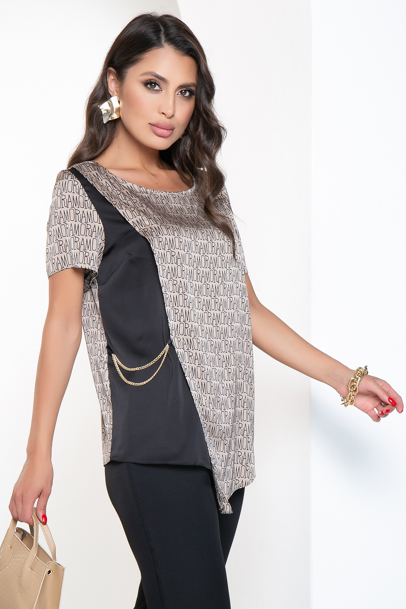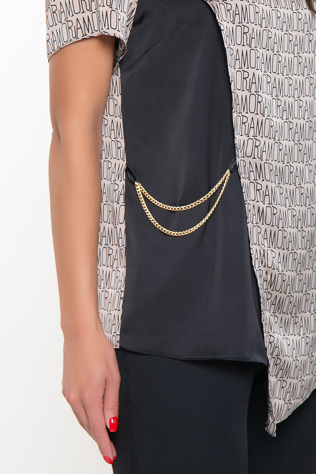 - Комбинированная часть декорирована цепочкой золотого цвета, ассиметричный низ создает необычный и стильный образ;
