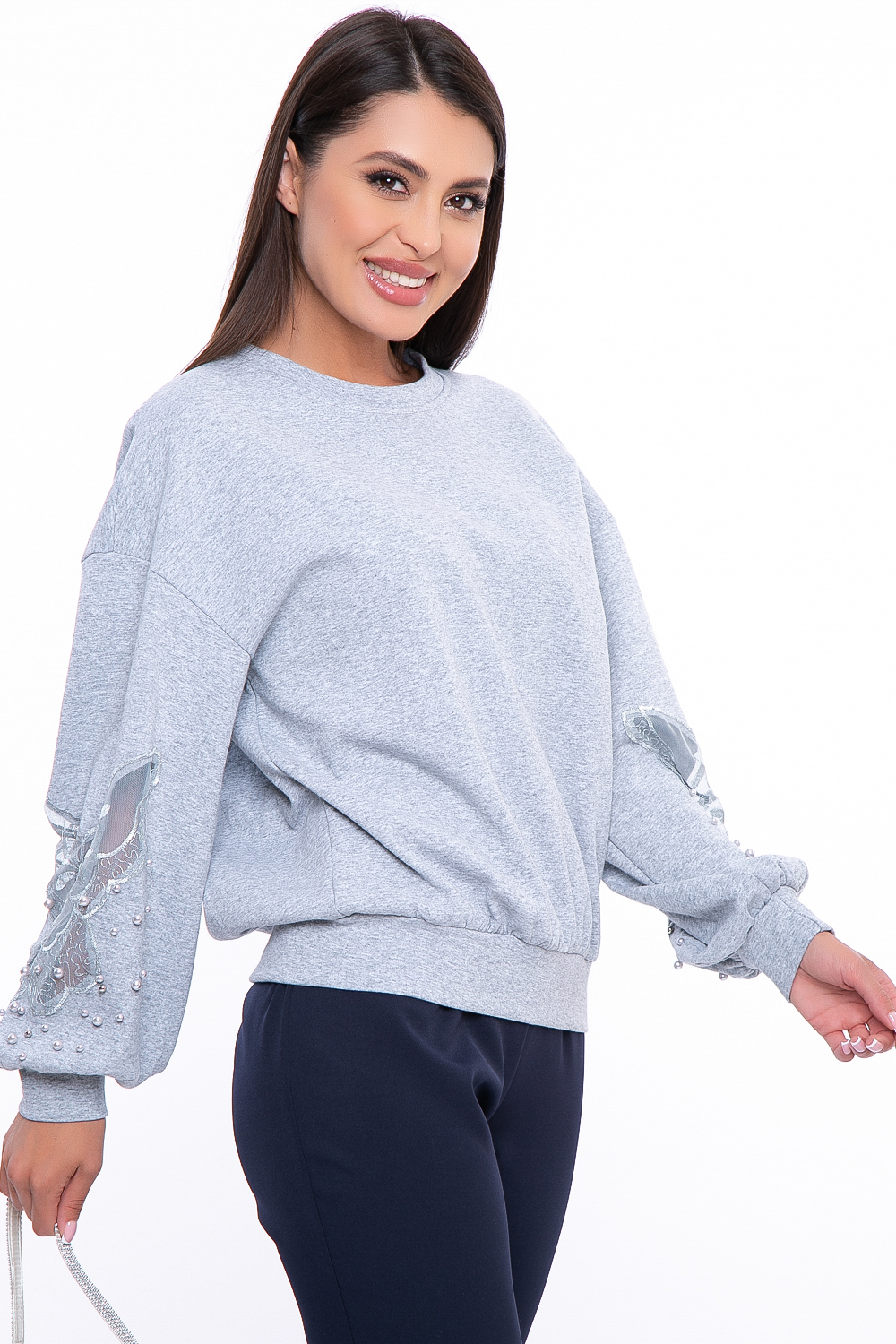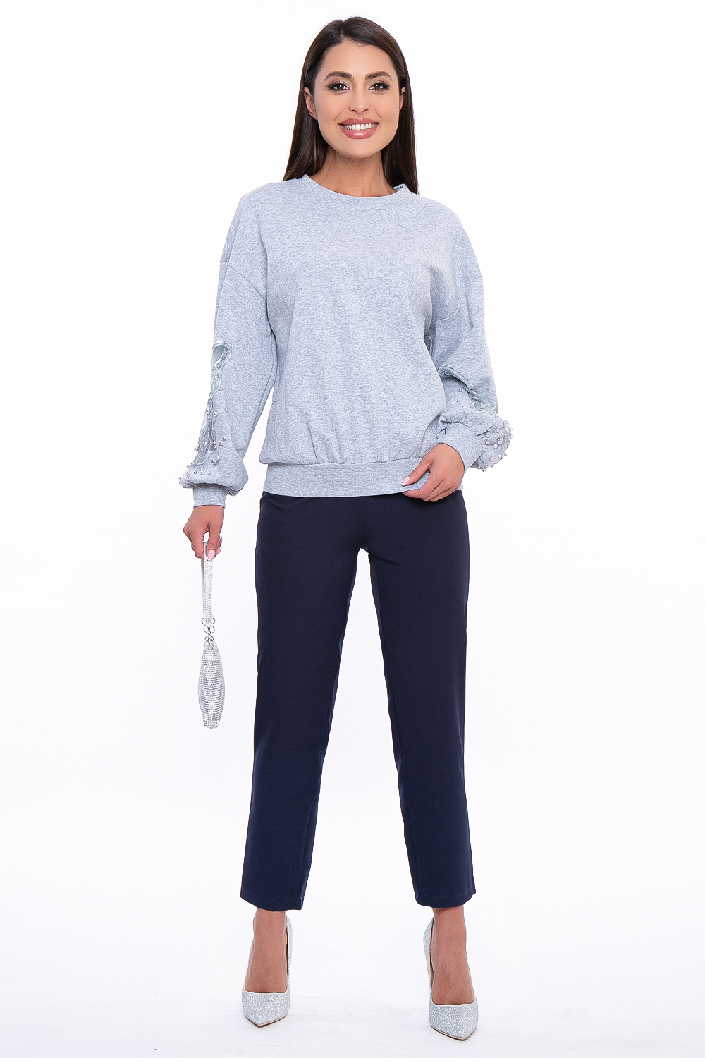 - Джемпер из мягкого трикотажа в базовом сером оттенке;