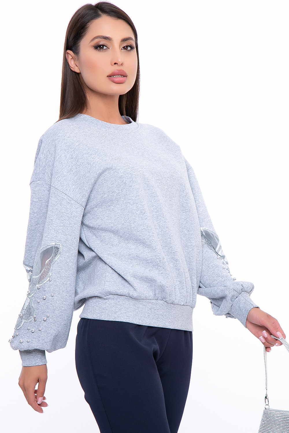 - Рукав длинный, декорирован кружевной вставкой в форме бабочки, и бусинами;