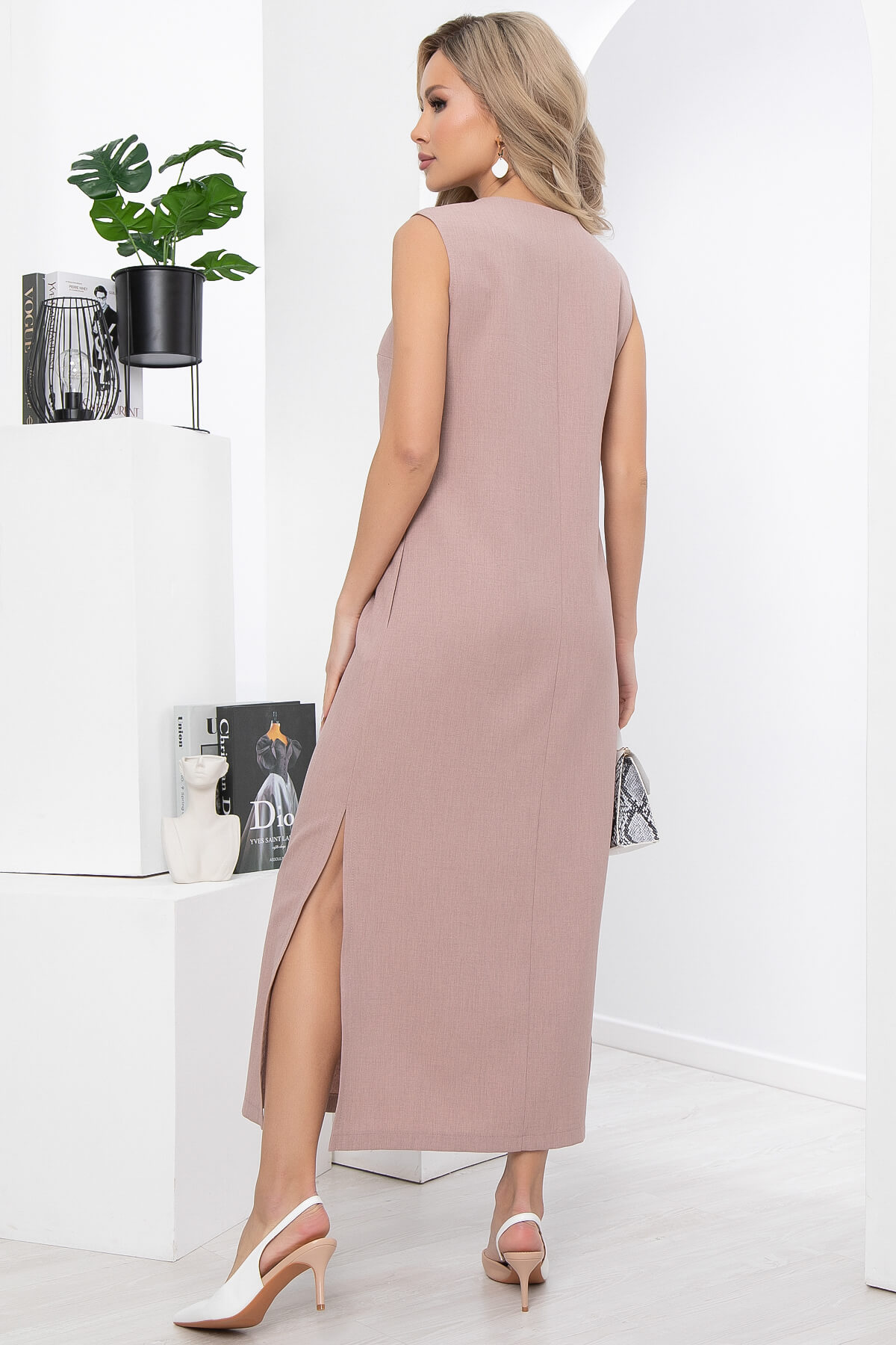 Стильное платье нежного оттенка неприхотливо в уходе и выборе аксессуаров, но при этом является самодостаточным элементом образа. Платье без рукава.По бокам юбки разрезы, что добавит вашему образу оригинальных акцентов.