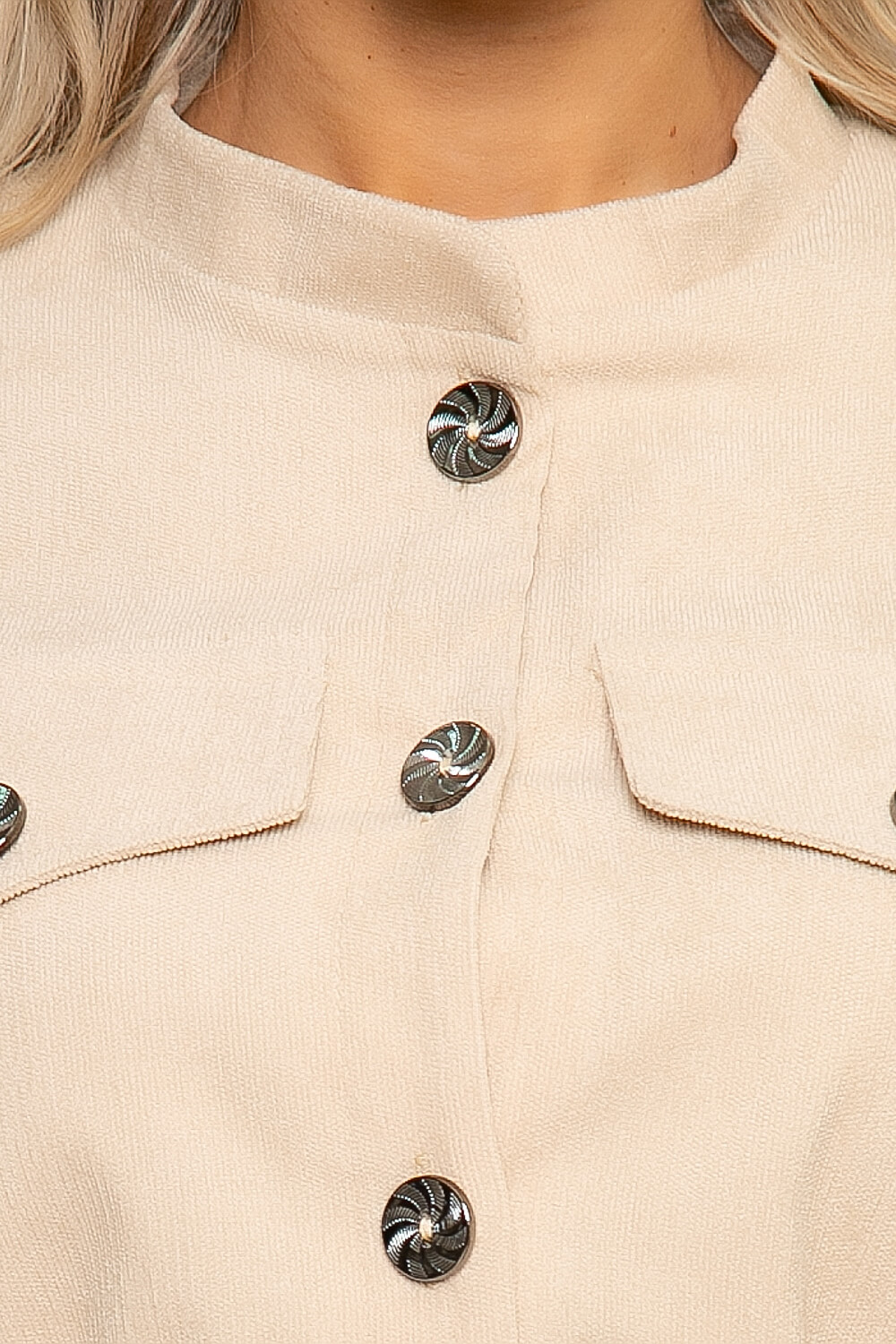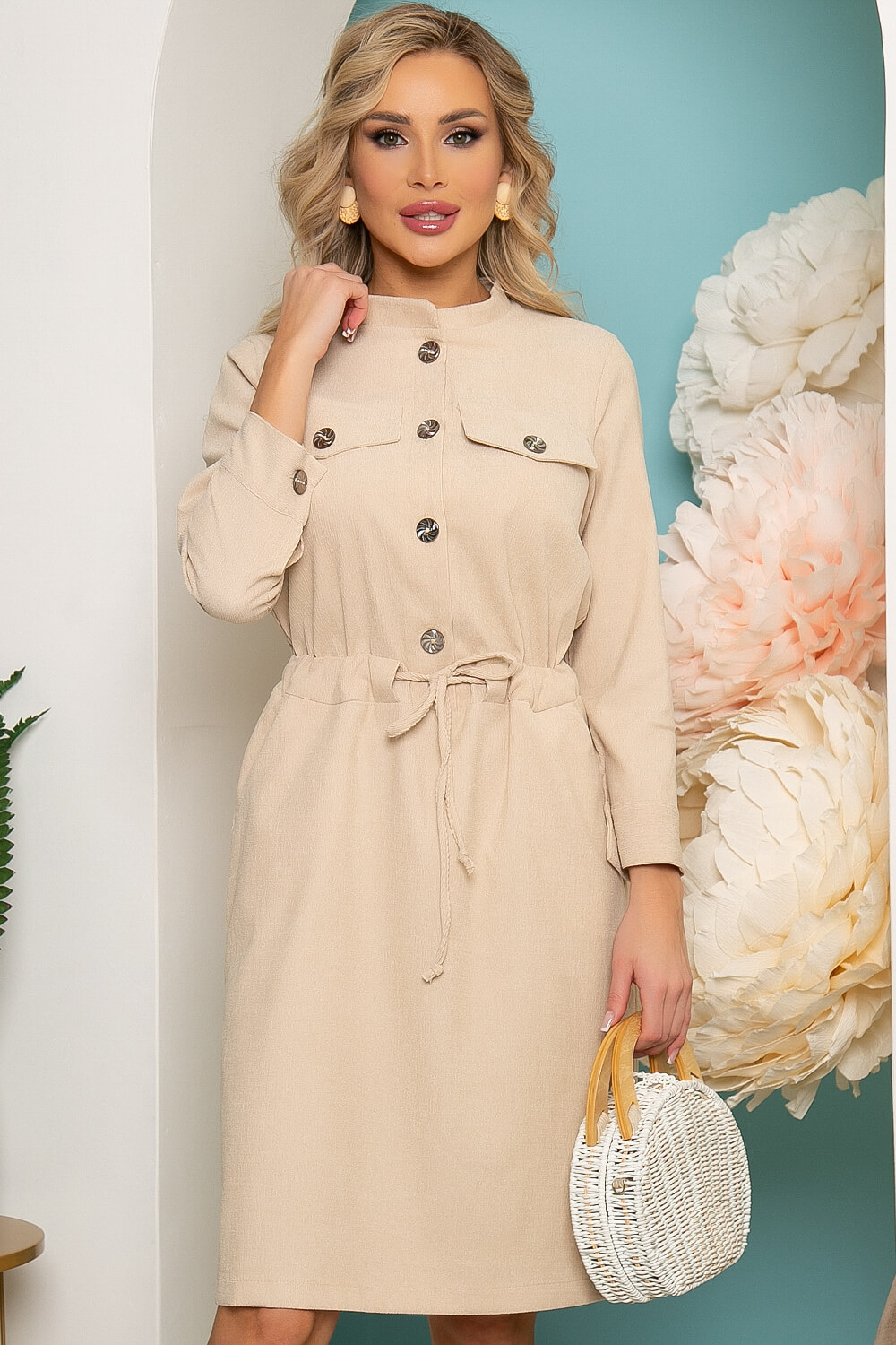 Абсолютный ХИТ - базовое вельветовое платье в оттенке "Слоновая кость" средней длины станет незаменимым весной и летом. Комфорт, удобство, стильный фасон, гармоничная длина и ничего лишнего! Это беспроигрышный вариант на каждый день. Платье прямого кроя, талия на кулиске. Воротник-стойка, по груди имитация кармашков. Рукав втачной, семь восьмых, на манжете. По верхней части переда притачная планка на функциональных пуговицах. В боковых швах карманы.