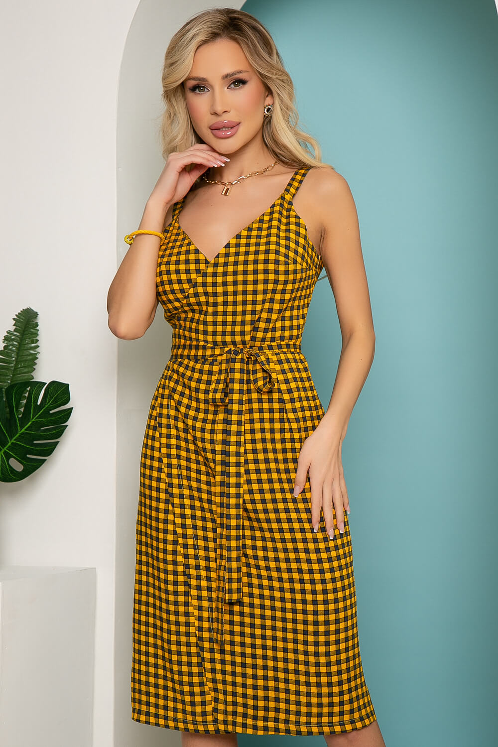 Сарафан из штапеля - настоящая находка для жаркого лета. Он невесомый, не стесняет движений, а благодаря своему крою прекрасно садится по фигуре! Сарафан скроен по типу "Платье-халат" с запахивающейся полой. Типичная черта кроя – V-образный вырез. Он создает эффектный контур вокруг шеи, визуально удлиняя её. Сарафан завязывается на вшитый поясок.
