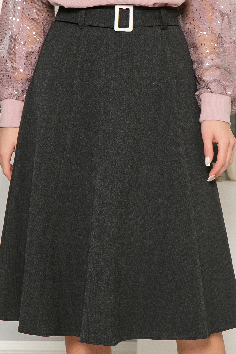 - Пояс юбки украшает декоративный поясок с пряжкой;