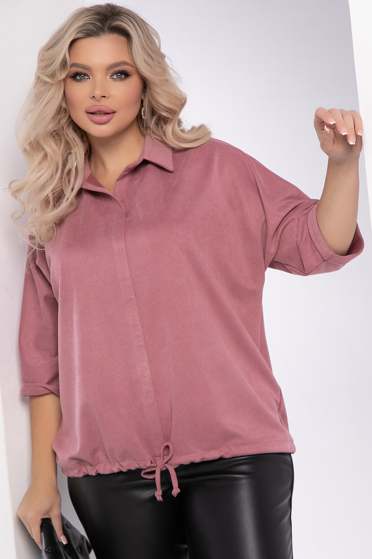Туника из трикотажа подойдёт для создания повседневных образов. Туника имеет приятный пыльно-фиолетовый оттенок, который является универсальным базовым цветом для повседневного и делового гардероба. Рукав цельнокроенный, по низу манжен из основной ткани. Вороник рубашечного типа на стойке. По низу изделия шнурок из основной ткани.