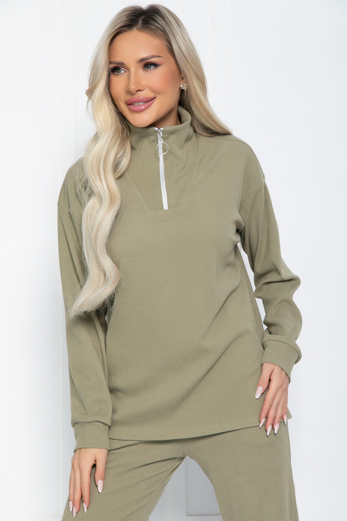 Вид застежки: молния на джемпере, брюки по талии на резинке.
