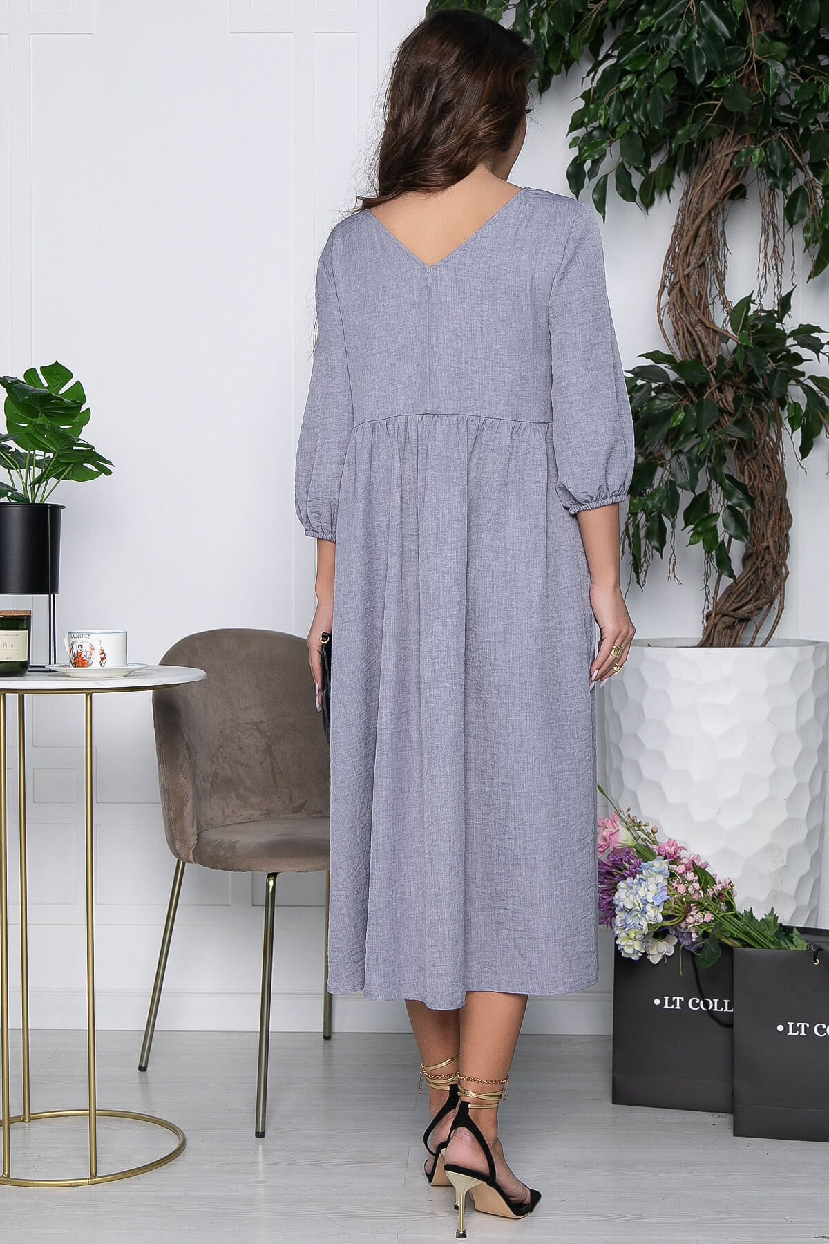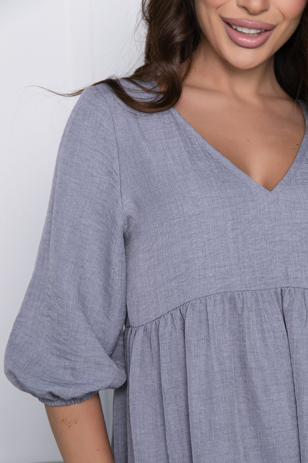 Невесомое воздушное серое платье с эффектом жатки! Благодаря своему крою оно будет удобно для беременных и будущих мам на выписку. Талия завышенная, вырез V-образный спереди и сзади. Низ рукавов на резинке.
